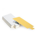 Slip/Dessert boards are used to display desserts, mignon cakes, cupcakes and savoury items. Excellent for stacking miniature cakes. Dimension 50mm x95mm, Double sided Gold/Silver