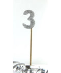 Celebrate in sparkly style with these dazzling Glitter Silver number candles - they're pre-mounted on spikes for fuss-free placement.