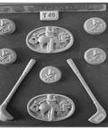 Golf Sign 8cm x 6cm. small circles 3cm. clubs 14cm x 3 cm. This mould is not used for candy centres. Suitable for chocolate, soap making, plaster and concrete crafting.