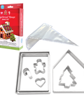 Bake your own gingerbread house using the d.line gingerbread house cutter set. Recipe and instructions included. This set includes 1 x roof, 1 x end, 1 x front/back, 1 x bay window, 1 x chimney, 1 x window, 1 x tree. Approx size 18.5cm high, depth 21.5cm, width 13.5cm