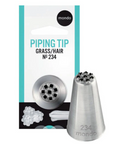 The Mondo #234 piping tip delivers professional results with its seamless stainless steel construction, ideal for creating bold hair, fur, and grass effects on cakes and cupcakes. The larger pull-out lines produced by this durable tip are perfect for detailed decorative work.