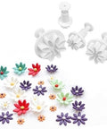 These daisy sugar paste plunger cutters are suitable to use on fondant/plastic icing, gum paste and flower moulding paste. Each cutter produces a 8 petal daisy. There are 4 daisy plunger cutters in this set with sizes approximately 10mm, 19mm, 27mm and 35mm across the widest points. Cut out daisies without pressing the plunger and use the plunger to eject the Daisy on to a soft foam sponge to dry or use immediately.