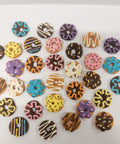 Pack of 32 donut sugar toppers. Made from royal icing, these are the perfect edition to your cakes, cupcakes, and more!