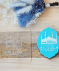 Its design makes it perfect for making sweet treats for Eid Mubarak celebrations! The Acrylic stamp measures 9cm x 9cm and has the words "Eid Mubarak" on it with a Mosque and Lanterns. The design measures approximately 5cm wide by 5.9cm high.
