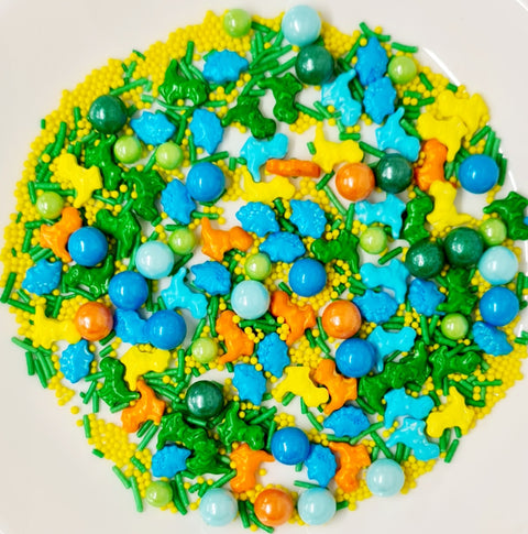 Finish off your cakes, cupcakes and cookies with this Bakette's Dino themed sprinkle mix.