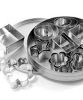 Loyal Assorted Cookie cutter set of eight shapes including squares, rectangles, hearts, stars, flowers circles and triangles in various sizes of each shape. 24 tin cookie cutters. The perfect set to invest in.